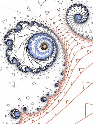 This was not actually produced with the program. I printed out a fractal, put a sheet of paper over it, and traced it using pencil crayons. Well, not really, but that's what it looks like.