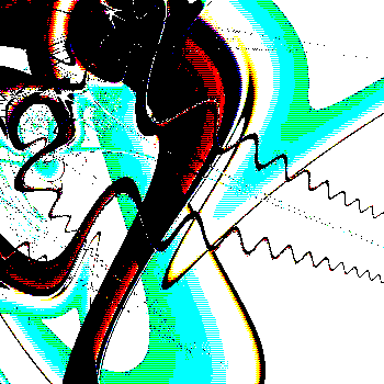 (Notes: The image is a fractal made with Sterlingware using one of it's "sine-trap" rendering methods. A photoshop filter, uscomic.8bf, gave it it's final comic book look.)