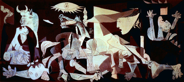 Mechanical creativity has some distinctive characteristics. Here's an example that I think will show some of the most important distinctions. Both images are graphically interesting but the top one by Picasso, Guernica is thoughtfully made rather than mechanically made. Picasso's tells a story and makes a statement about an historical event. The mechanical one, bottom, made by a fractal program, suggests all sorts of interesting things (to me, at least) but it doesn't present a clear and coherent story that links them together or even suggests any kind of deliberate message. Suggestiveness and simple, iconic expression are characteristics of mechanical creativity while intelligent commentary and intentional meaning are characteristics only of human (intelligent) creativity.
