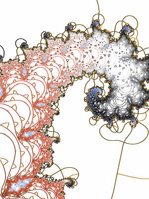 A fairly dull image if it wasn't for the transformation the random palette does to it. Biomorphs will sometimes loose their lines and seem to float as a cloud of ice crystals. No other coloring mode has this effect, which is why I like to use it.